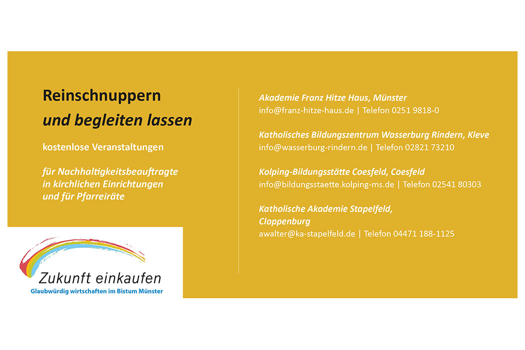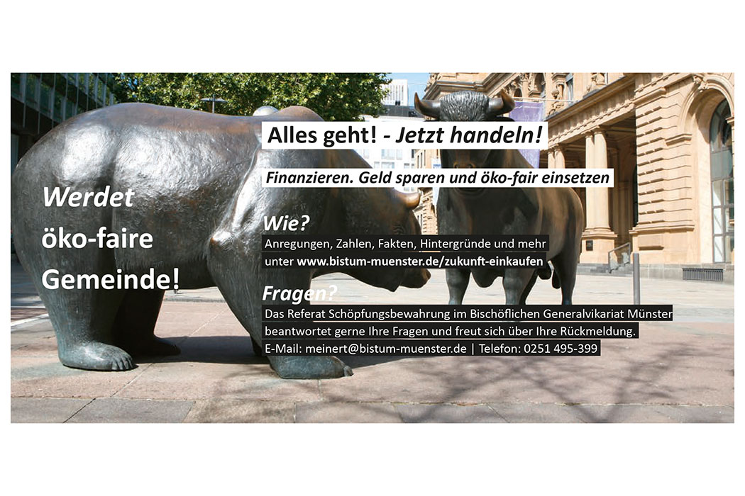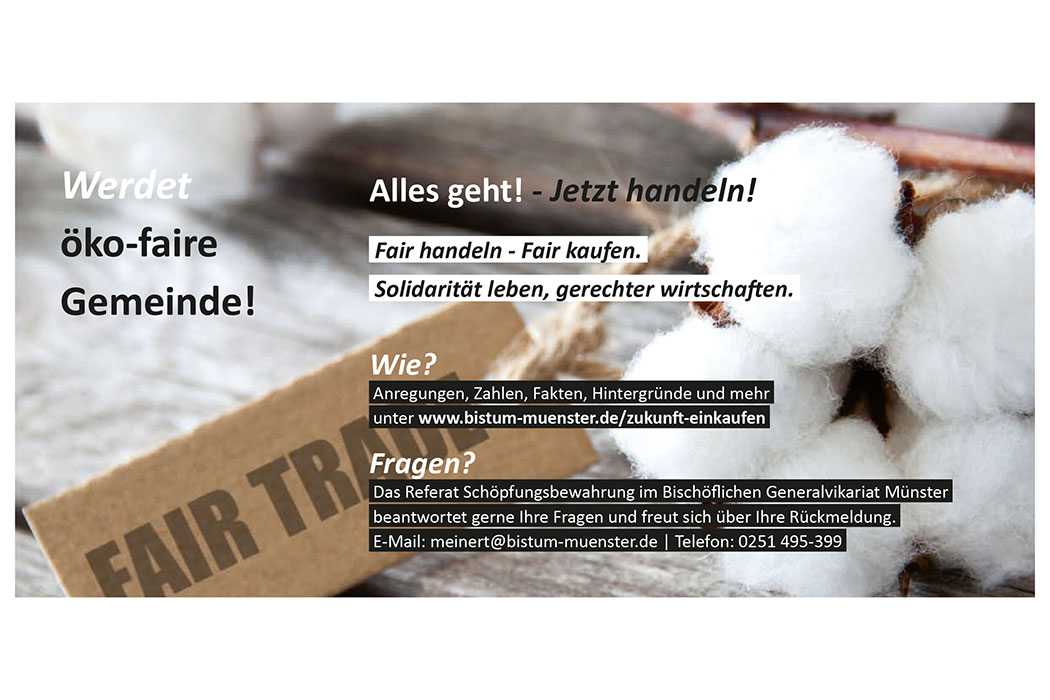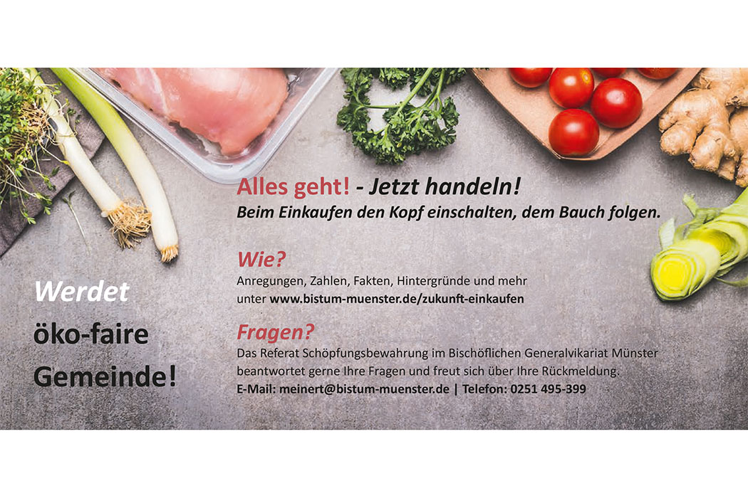 In diesen Tagen hören wir immer wieder vom Artensterben bei Insekten und Vögeln. Jugendliche gehen freitags auf die Straße, statt in die Schule. Und wir Erwachsenen? Lassen wir alles so laufen? Nein, so kann es nicht sein. Unsere Gemeinde hat sich auf den Weg gemacht. Vom Bistum Münster ist das Projekt „Zukunft einkaufen“ entwickelt worden. Und wir sind dabei.