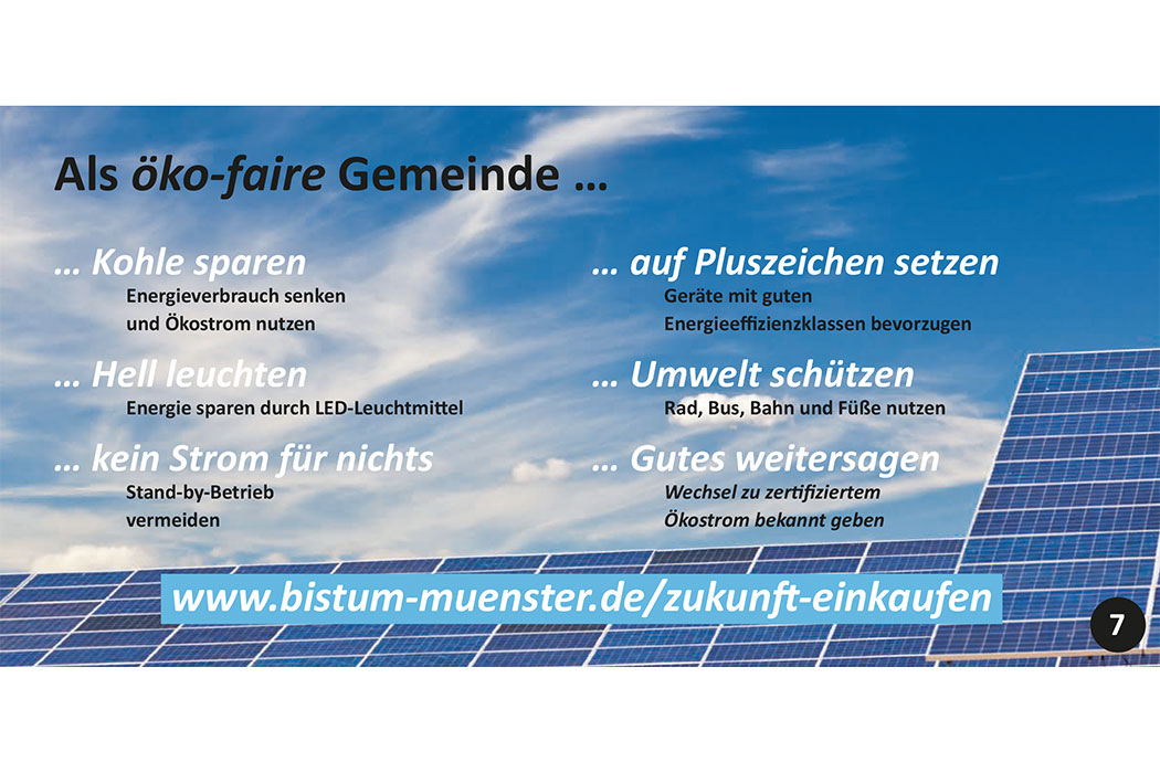 „Ökofaire Beschaffung und nachhaltiges Wirtschaften“ heißt das Zauberwort und dies wirkt sich auf die Bereiche der Gemeinde aus. Das heißt, es soll ökologisch, nachhaltig, fair und regional eingekauft und gewirtschaftet werden. Dies gilt in allen Bereichen der Gemeinde, auch in den ehrenamtlichen Bereichen und Gruppierungen.